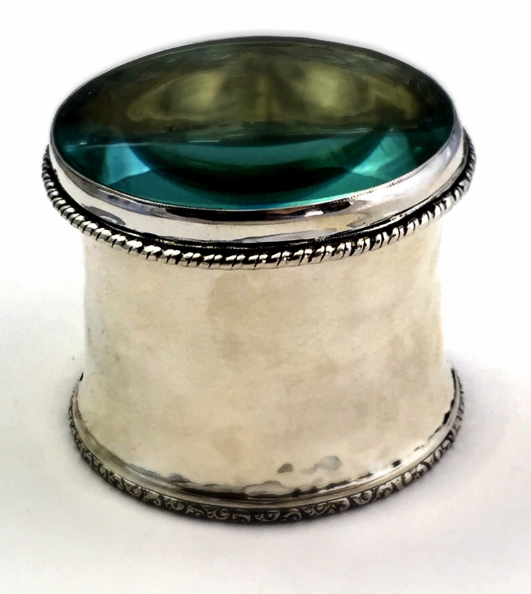 For the past 10 years, we have been commissioned by our longtime customer and friend, Nikki Giovanni, to make an award that is presented to the winner of the Steger Poetry Prize. We hammer and forge sterling silver to create a magnifier statue meant for a desk. The design changes slightly each year. Setting the magnifying glass in a bezel is always a challenge - it is equivalent to setting a giant gemstone. A big congratulations to this year's winner!